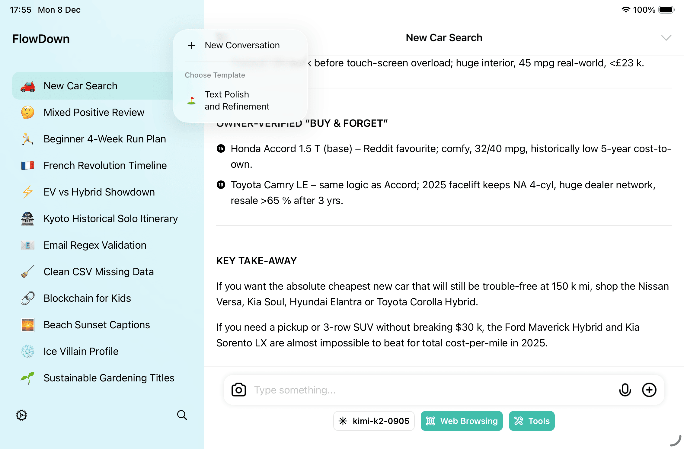 - Start a conversation via + → Choose Template in the new chat menu (including the floating New Chat button). On macOS, the app menu also offers “New Chat With Template.”